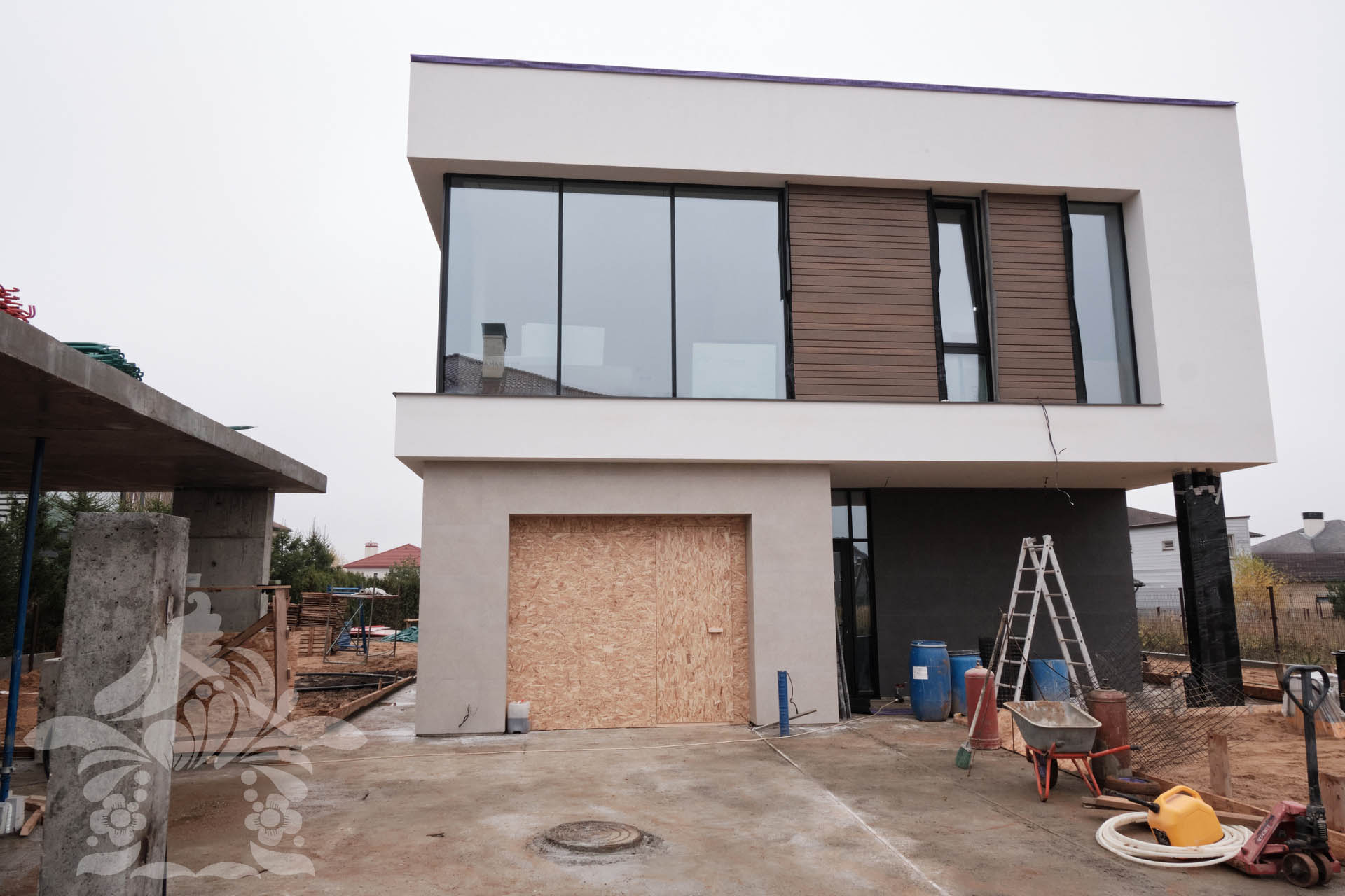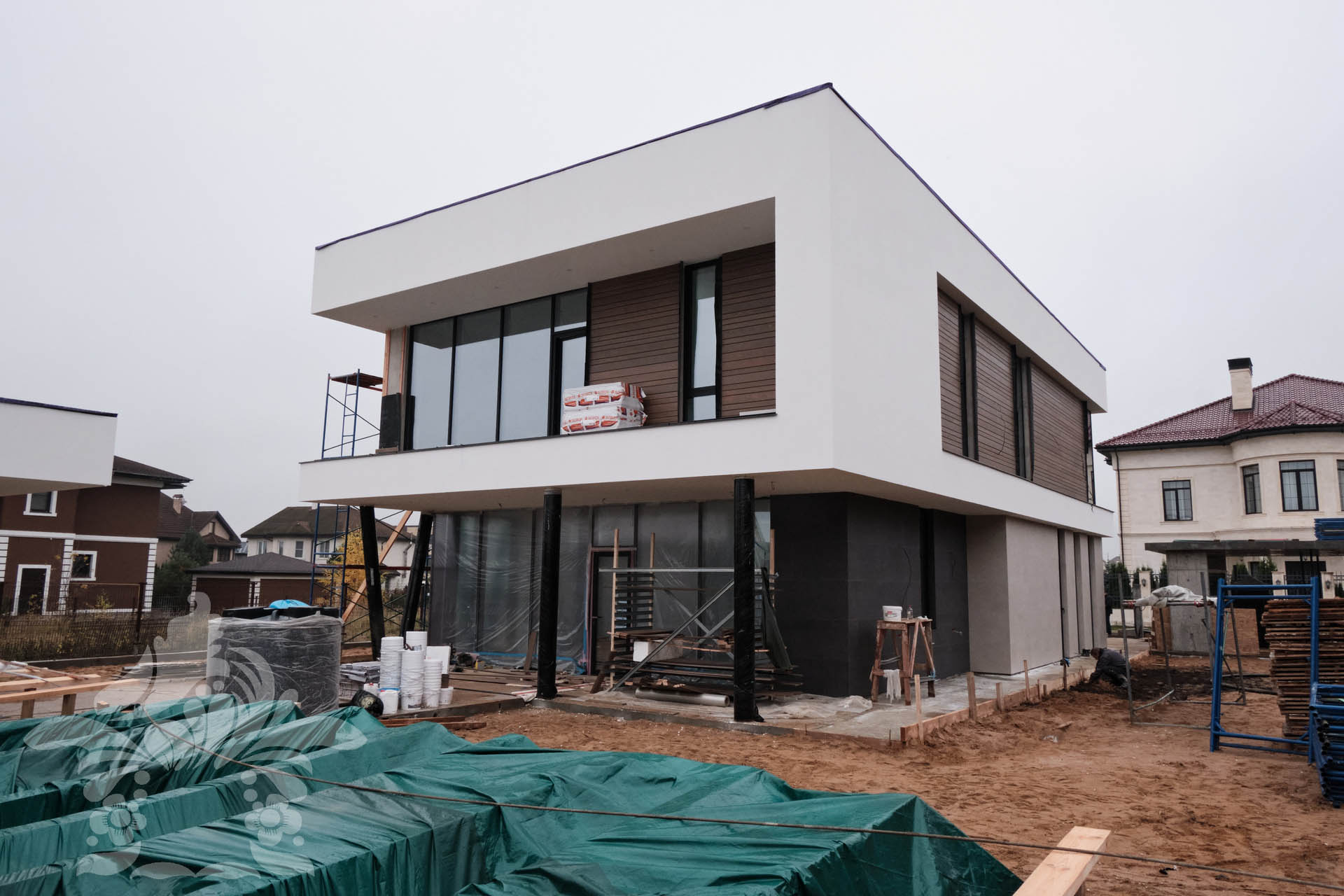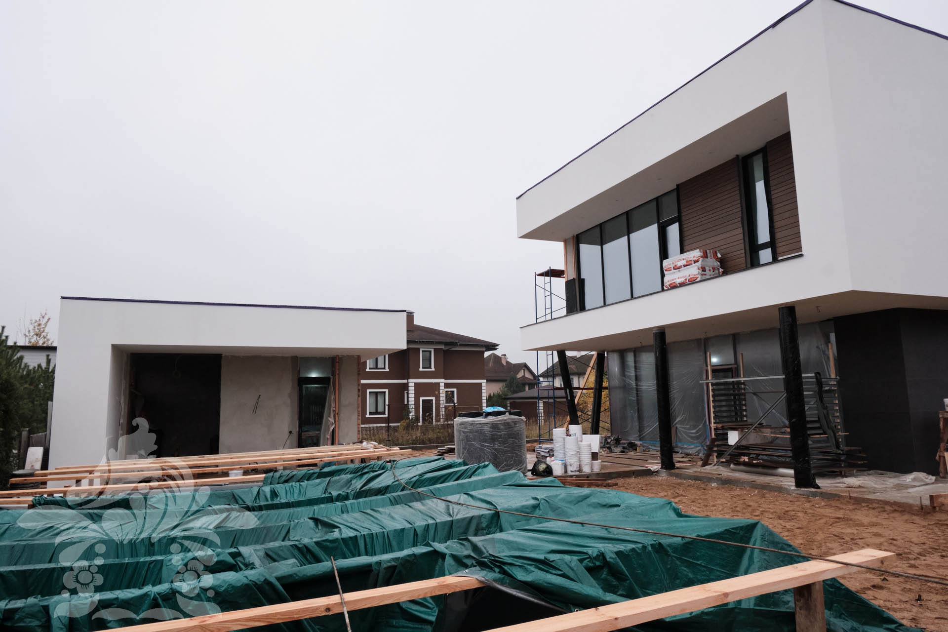 В проекте: кухня-гостиная со столовой, 4 спальни с санузлами и гардеробными, гостевая комната, встроенный гараж, большая терраса, технические и вспомогательные помещения.
