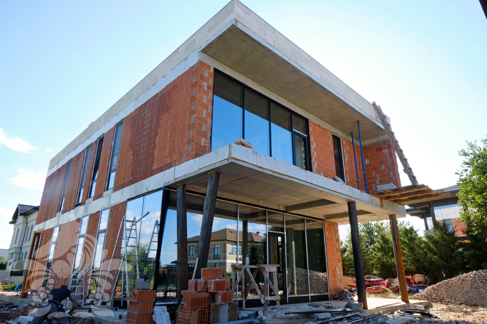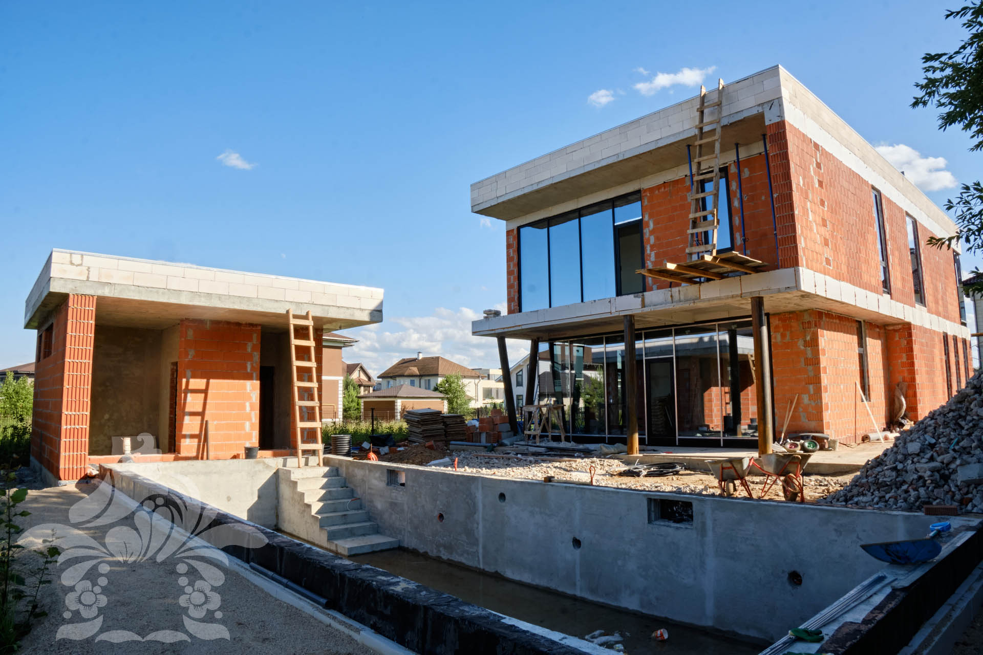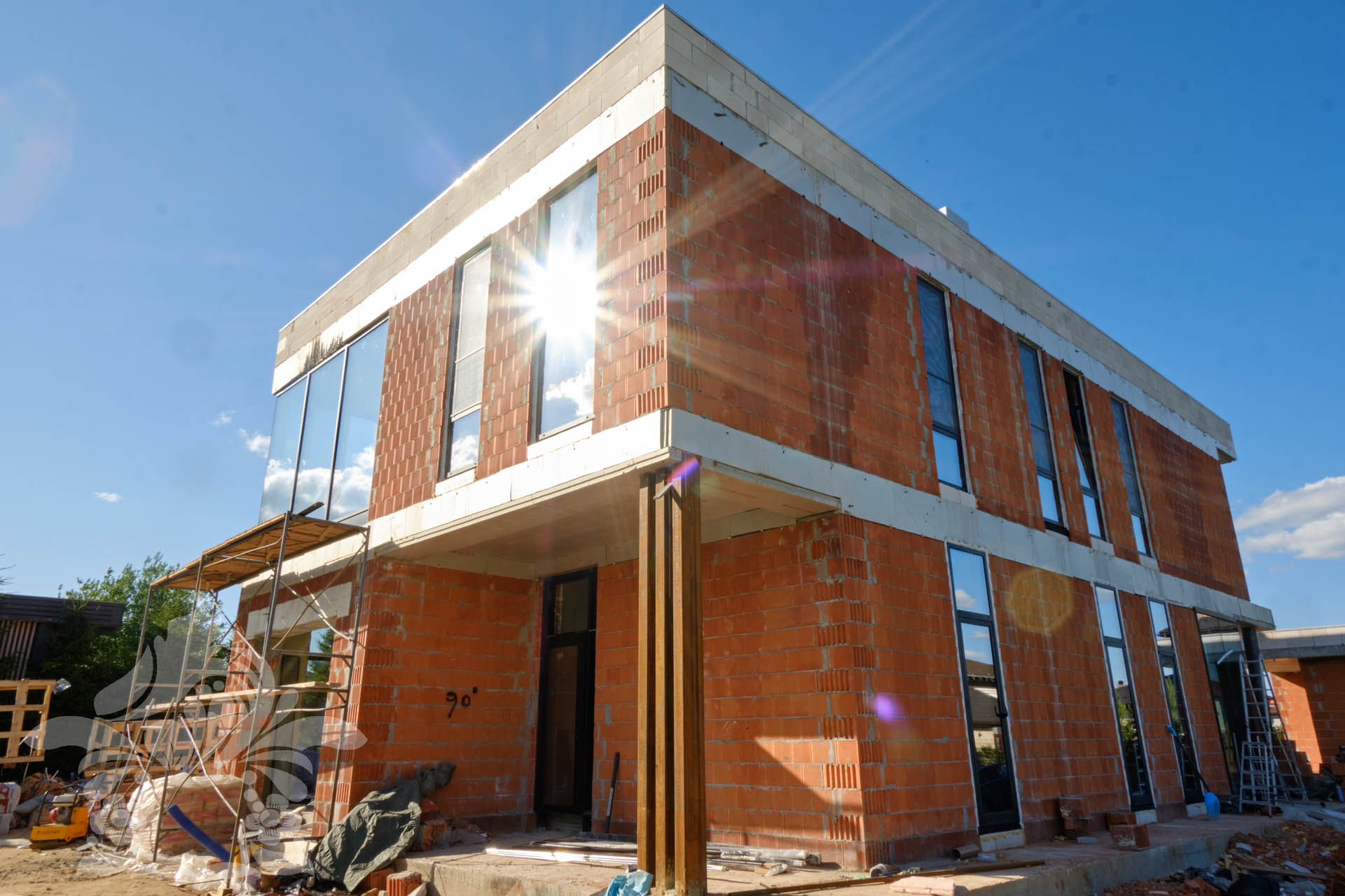Двухэтажный коттедж из керамических блоков Porotherm на плитном фундаменте для проживания до 8-ми человек. За комфорт отвечает большая кухня-гостиная с зоной столовой, гостевая комната, сауна и много полезных помещений. 4 спальни с персональными санузлами и гардеробными. Полноценный второй этаж, встроенный гараж, опоясывающая терраса 94 кв.м.